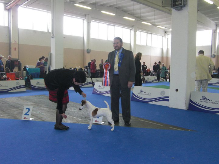 Ve třídách dospělých postupně bojovalo 10 psů o titul Evropský vítěz. Ten zasloženě získal velmi pěkný, elegantní a kompaktní Mercury Fox Leaser (maj. Gábor Mitnyan, Maďarsko). Titulem R-CACIB byl oceněn jeho bratr Mercury Fox Ledger (maj. Anne Kilsund, Švédsko). Oba jsou potomky překrásné Agria Flamingo. Bez zajímavosti jistě není, že syn z jejího druhého vrhu Mercury Fox Hugo Sanches je letošním Cruftovým vítězem (CC). Ve třídě otevřené pěkného výsledku v podobě ocenění výborný 3 dosáhl i český zástupce Quick Super Pride (maj. Lubomír Chmelař). Velkým zklamáním byl pro mne vítěz letošního Zlatého poháru (nejprestižnější speciální výstavy ve Velké Británii) Star Pride Lots of Love. Podle mého názoru je dost nemoderního typu - velmi robustní, neelegantní, obdélníkového rámce. Mezi fenami se Evropskou vítězkou mladých stala Agapion Brigitte Nielsen (maj. Attila Szlávik, Maďarsko), následovaná dánskou Foxingdane C’Est La Vie a českou Elitte Tuskulum. Vítězná fena mě však ničím zvlášť neoslovila. Ve statice sice ještě působila dobře, ale její pohyb postrádal rozsah i dynamiku. Mezi dospělými fenami vybrat tu nejlepší bylo v Celje snadným úkolem. Svou tělesnou stavbou, předvedením a skvělou kvalitou nad ostatní vyčnívala finská Texforrier Marimekko (maj. Molli Nyman). Jedna z těch, co upoutá pozornost na první pohled. Své nesporné přednosti její majitelka podtrhla neuvěřitelně precizním předvedením. Vnučka Světového vítěze Sunrise Rascals Fair dobře pokračuje v „rodinné tradici“. Titulem R-CACIB byla oceněna Agria Wendy. Podle mého názoru by ovšem toto ocenění více slušelo vítězce třídy otevřené (CAC), feně Bílá Noc od Rytíře Malovce (maj. Iveta Nováková). V konečném hodnocení byl titul BOB naprosto zaslouženě udělen feně Texforrier Marimekko.